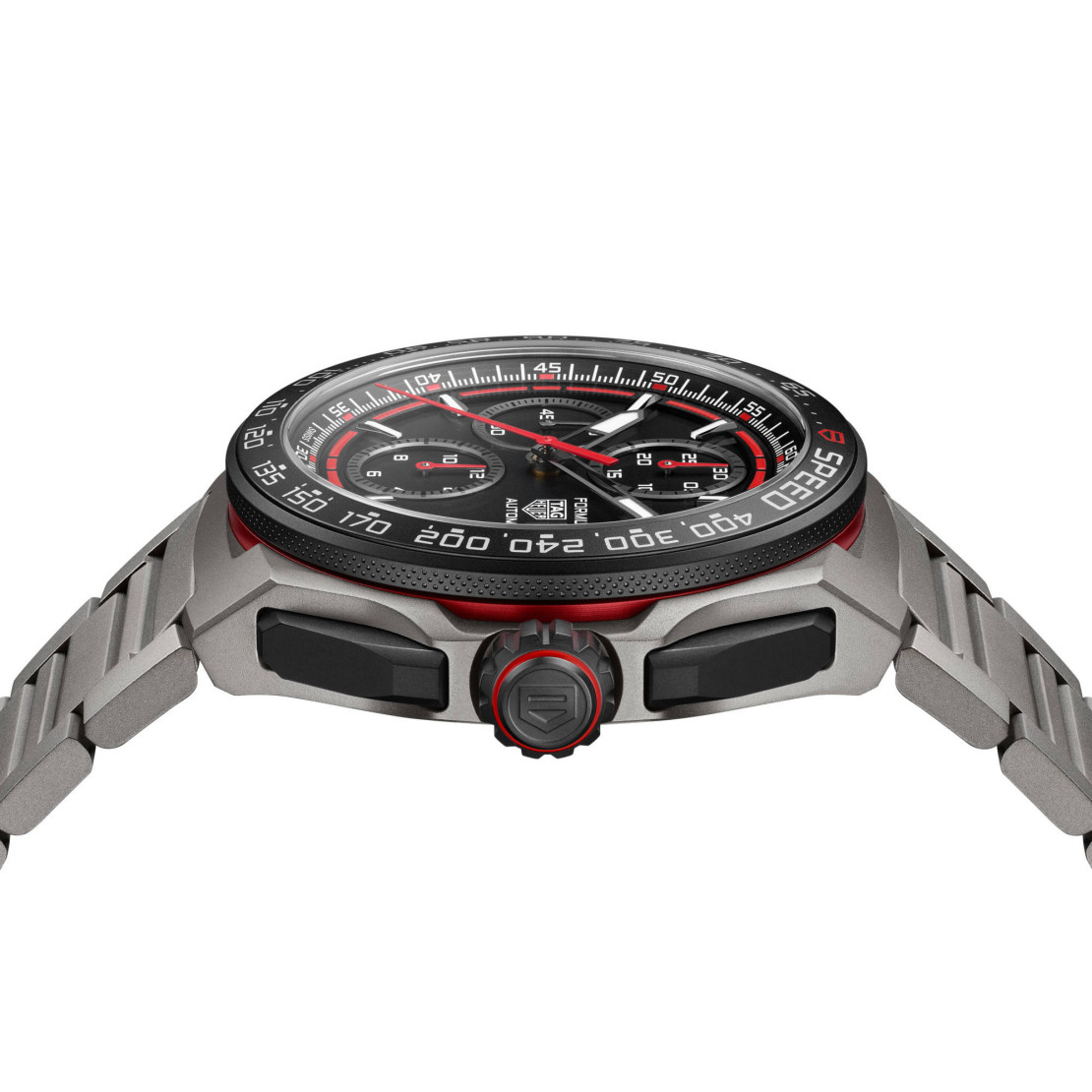 Ref. CBZ2082.BF0009 - Dieser auffällige TAG Heuer Formula 1 Chronograph versprüht Kühnheit und verbindet die Robustheit von Titan mit sportlicher Energie. Die Uhr mit 44 mm Durchmesser wird von dem automatischen Calibre 16 angetrieben und ist wie geschaffen für Geschwindigkeit, Stil und jede Herausforderung dazwischen.