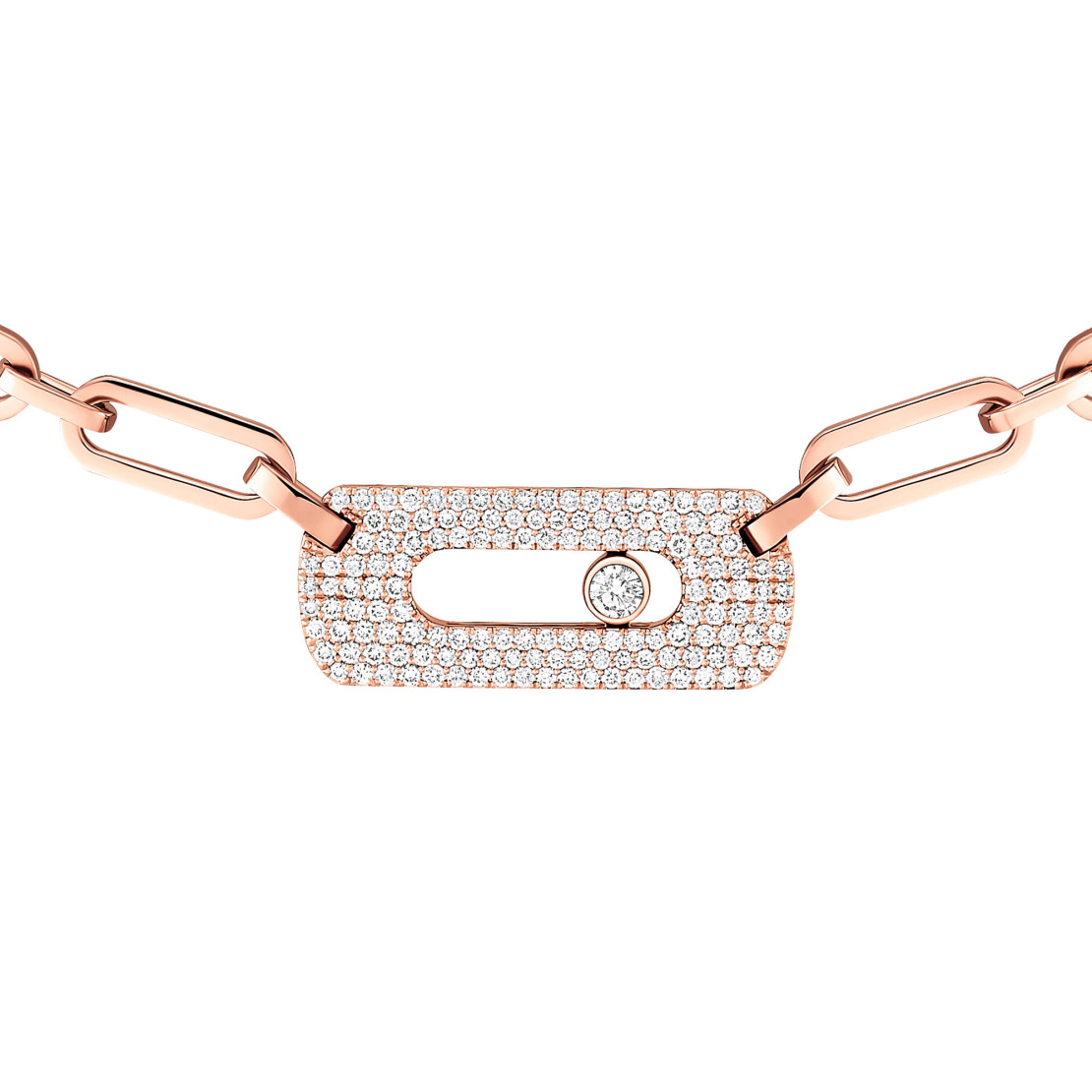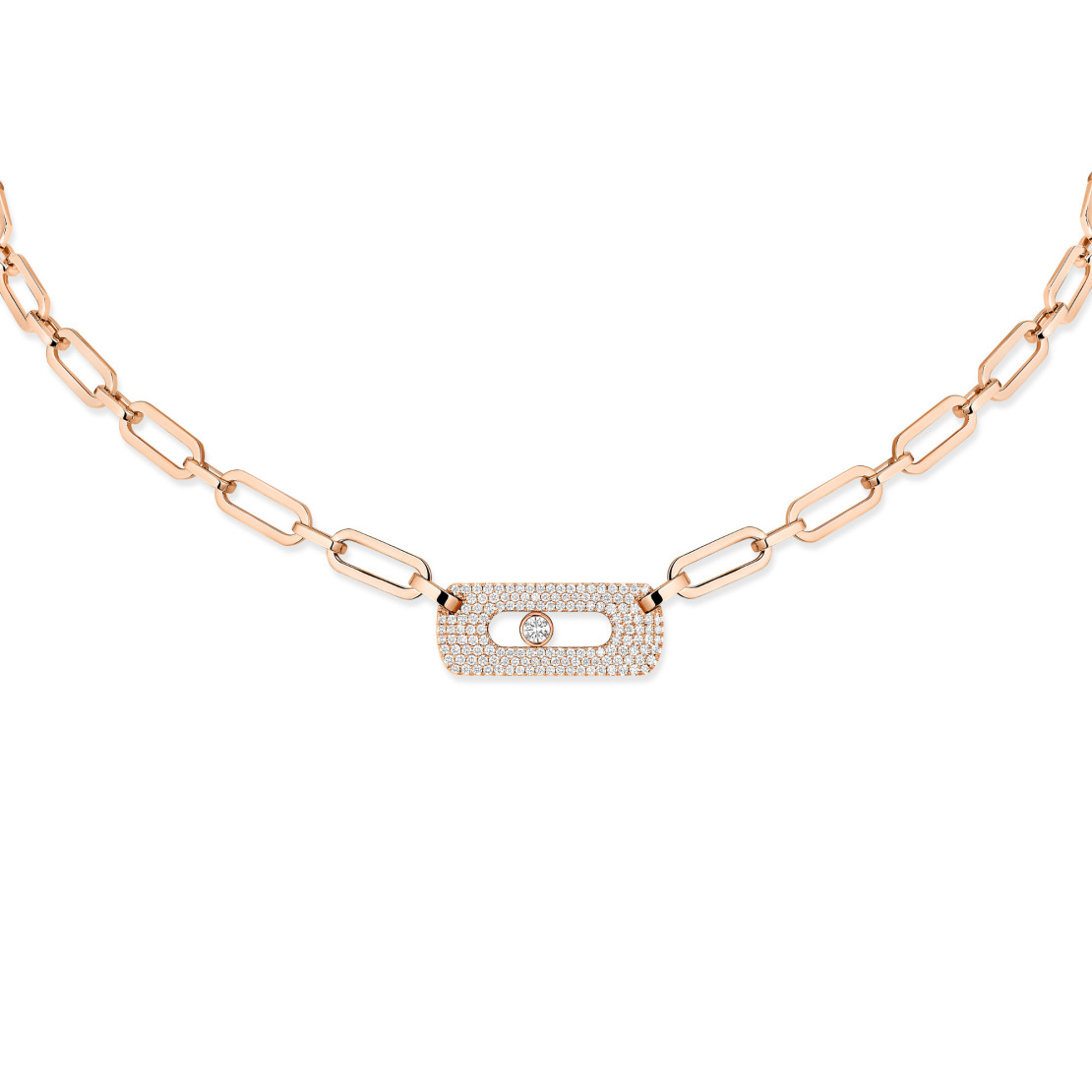 Ref. 12095-PG - Die zum Klassiker erhobenen XXL-Ketten geben auf Laufstegen und in unseren Schmuckkästchen nach wie vor den Ton an. Kraftvoll im Design und elegant in den Proportionen: Die neue Move Link Gliederhalskette lässt Frauenherzen höherschlagen. Sie ist aus 18 Karat Roségold gefertigt, schmiegt sich sanft um den Hals und verleiht der Haut einen strahlenden Glanz. Mit ihrem schillernden, mit Diamanten besetzten Move Motiv und den breiten Kettengliedern ist diese eng anliegende Halskette ein kühnes und selbstbewusstes Schmuckstück, das jedes Outfit perfekt abrundet.